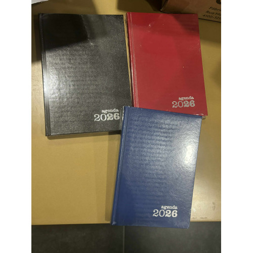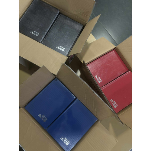Tamanho A5, Cor-preta,azul ou vermelha.