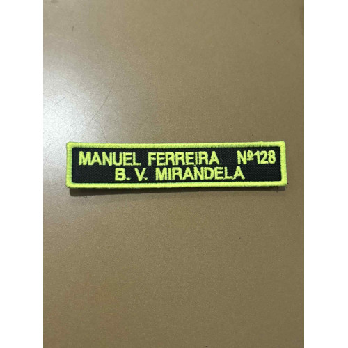 NOME BORDADO DE VELCRO C/MEDIDAS 12CM X 2CM C/CORPORAÇÃO