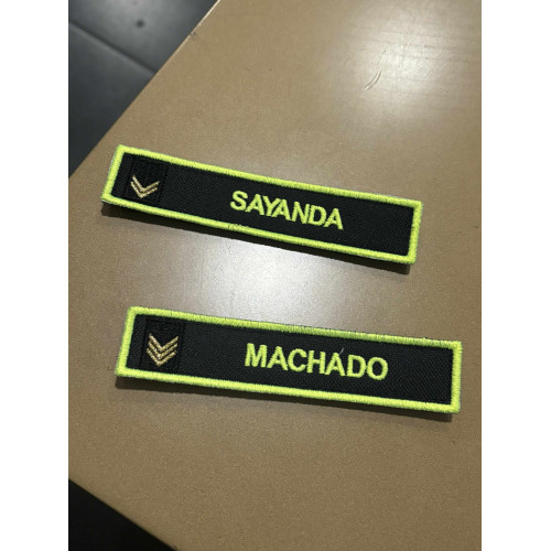 NOME BORDADO DE VELCRO C/MEDIDAS 12CM X 2CM COM DIVISA E REBORDO