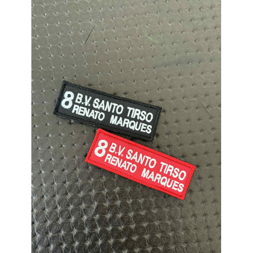 NOME BORDADO DE VELCRO COM CORPORAÇÃO E NÚMERO DE LADO NO MEIO